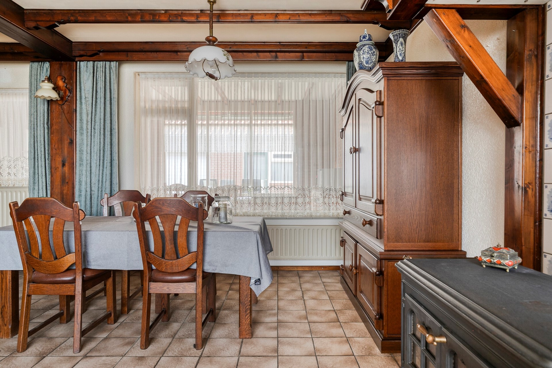 De woonkeuken bevindt zich in de uitbouw. De keukenopstelling is eenvoudig, maar de ruimte biedt volop mogelijkheden voor modernisering. Denk bijvoorbeeld aan het plaatsen van een schuifpui naar de tuin voor een heerlijk binnen-buitengevoel. Wie de muur tussen de woonkamer en keuken verwijdert, creëert bovendien een prachtige open leefruimte met veel licht en verbinding.