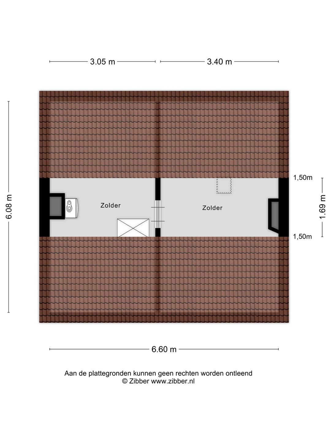 Via een vlizotrap bereikt u de voorzolder met cv-installatie. De achterzolder, momenteel in gebruik als bergzolder, beschikt over een dakraam en biedt mogelijkheden voor uitbreiding — bijvoorbeeld een extra slaapkamer na het plaatsen van een vaste trap en dakopbouw.