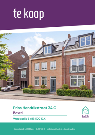Deze informatie is met zorg samengesteld, doch Eline Makelaardij aanvaardt geen aansprakelijkheid voor onjuistheden en onvolledigheden van de opgenomen informatie, noch kan aan de vermelde informatie enig recht worden ontleend.