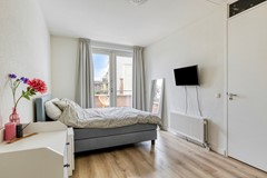 • Slaapkamer 2: +/- 17 m², deze slaapkamer is gelegen aan de achterzijde en is voorzien van een laminaatvloer en openslaande deuren naar het dakterras