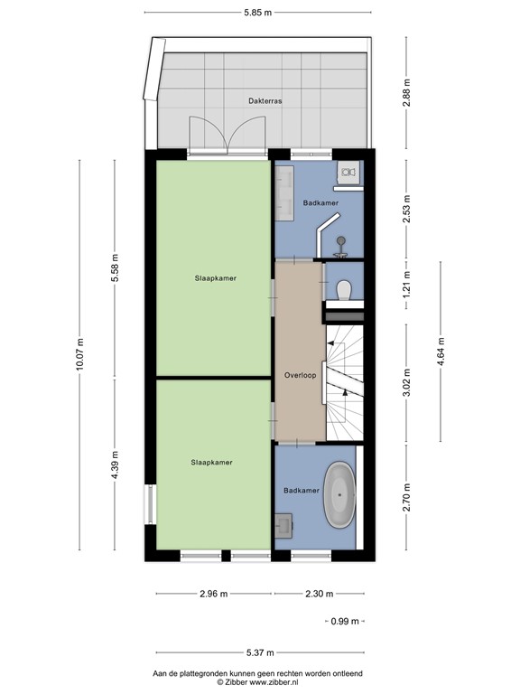 • Slaapkamer 2: +/- 17 m², deze slaapkamer is gelegen aan de achterzijde en is voorzien van een laminaatvloer en openslaande deuren naar het dakterras