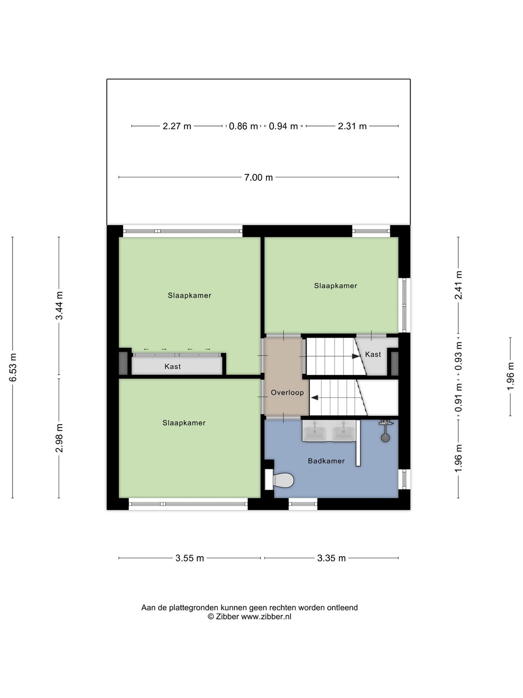 De overloop geeft toegang tot drie slaapkamers en de badkamer. Alle slaapkamers zijn voorzien van een strakke laminaatvloer.