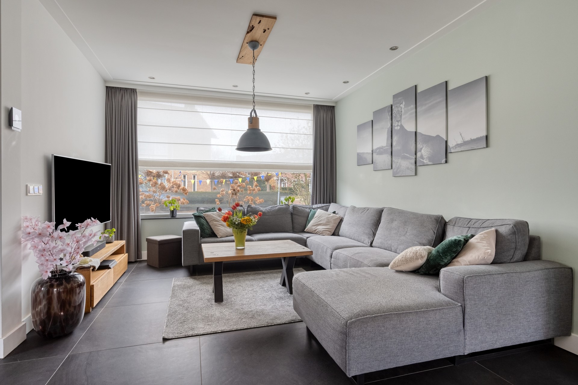 Met een grote open woonkeuken met kookeiland, vier ruime slaapkamers, een vrijstaande garage en een ruime, sfeervolle tuin, is dit een ideale gezinswoning voor wie comfort, sfeer én ruimte zoekt. De combinatie van volledig gestucte wanden en plafonds, een donkere keramische tegelvloer (80x80 cm) met vloerverwarming en een stijlvolle elektrische designhaard maakt deze woning tot een echte eyecatcher.