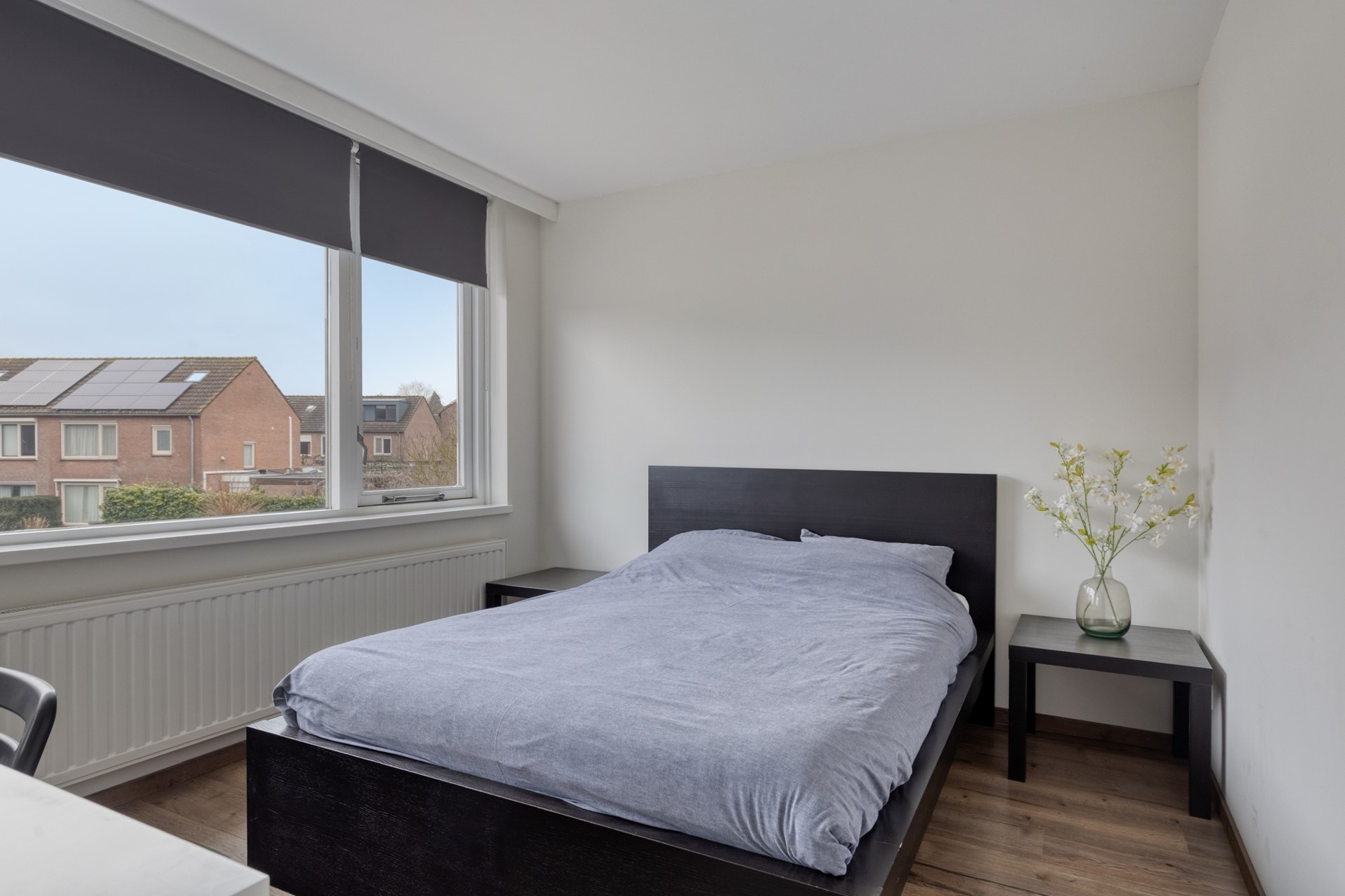 • Slaapkamer 3: ± 8 m², gelegen aan de achterzijde, voorzien van rolluiken