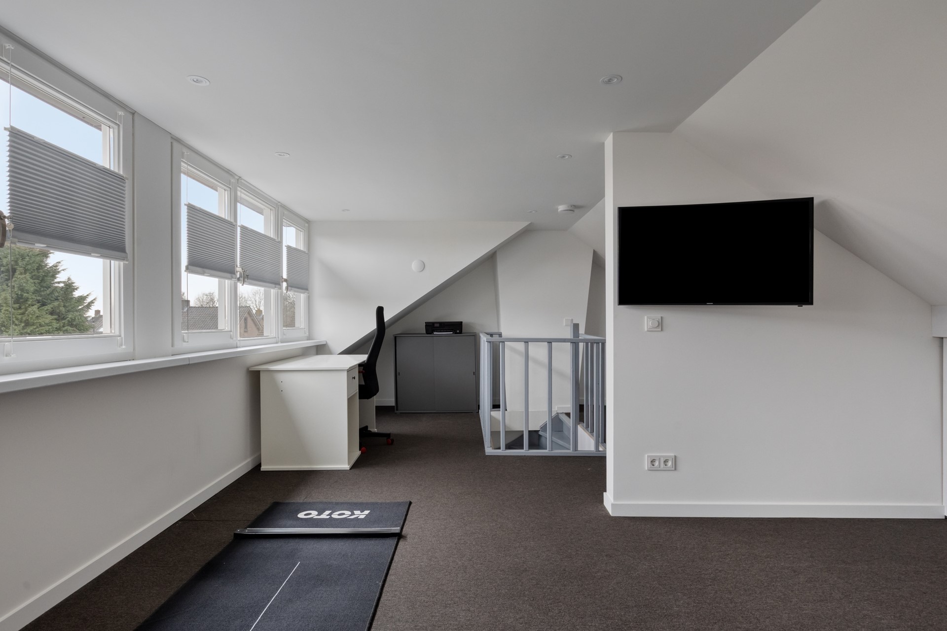 Via een vaste trap bereikt u de fraaie open zolderkamer van maar liefst 26 m². Over de volledige breedte aan de achterzijde is deze verdieping voorzien van een dakkapel. Onder de schuine kant is een praktische kastruimte gerealiseerd. De ruimte is afgewerkt met vloerbedekking en uitermate geschikt als vierde slaapkamer, werk- of hobbyruimte.